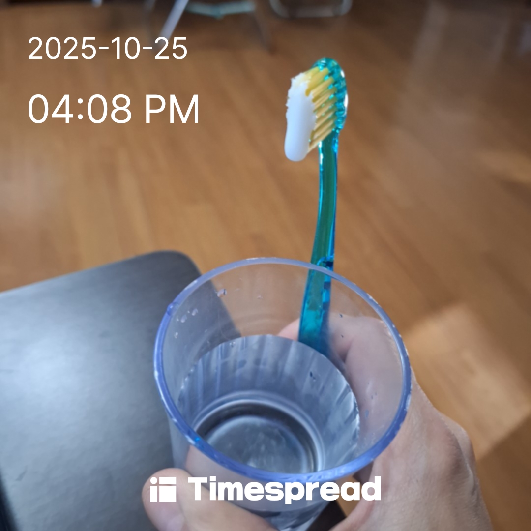 양치질하기챌린지어제저녘에는 너무늦은 시간까지 영수증 뽑은내용을 살펴보느라  일어난 시간이 오후 3시더라구요.......빨리 밥먹고 양치질 하러 화장실에 갑니다~~